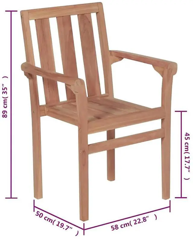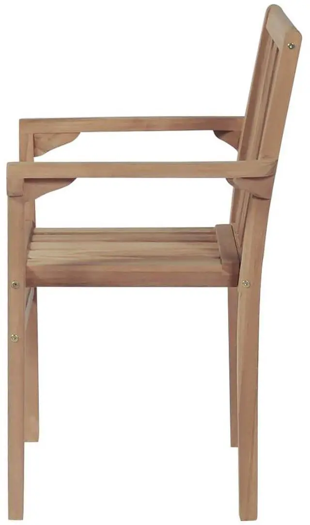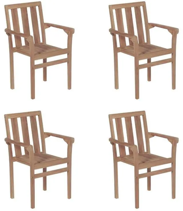 This stackable outdoor dining chairs set mixes a stylish design with practical use, perfect for any patio, balcony, or garden dining area. Made from solid teak wood with a fine sanded finish, these chairs give solid support while adding a classy touch to your outdoor setting.