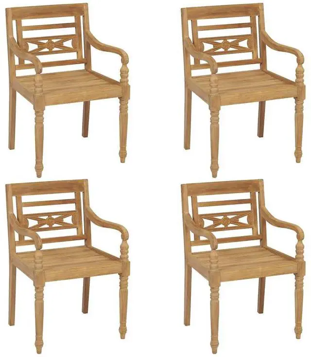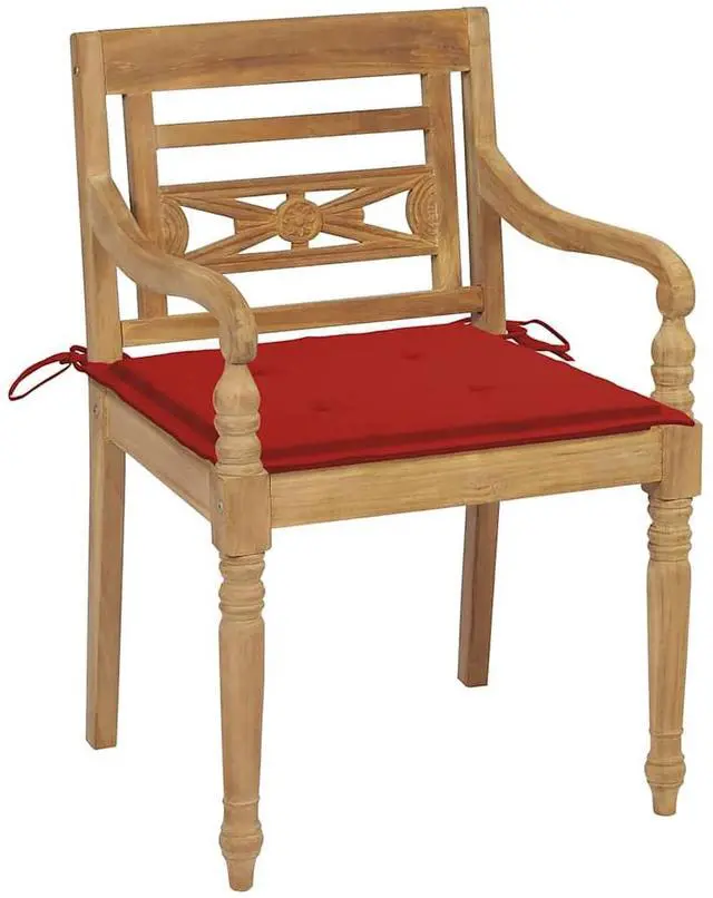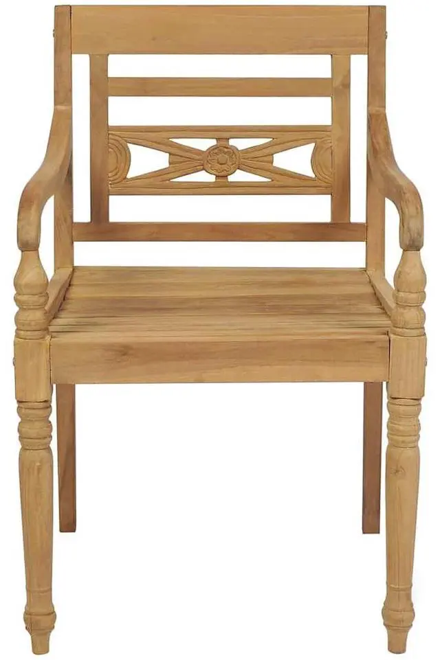 This vidaXL Batavia Teak Chair mixes comfort with rustic charm, making it a perfect addition to any patio or garden. With solid teak wood making its base, it provides reliable seating and adds a stylish natural look to your dining experience, whether inside or out.