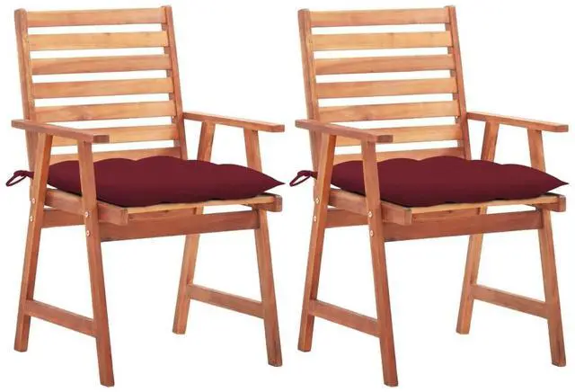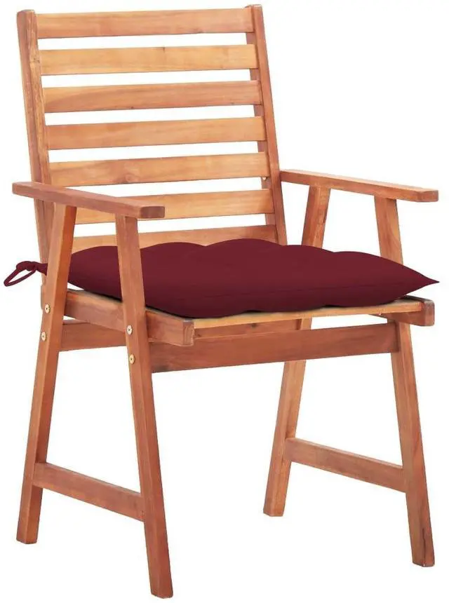 This Outdoor Dining Chair set mixes style and durability, making it a great choice for your outdoor experience. With solid acacia wood, these chairs are not just good-looking with their elegant wine red cushions, but they're comfy too for long dining sessions.