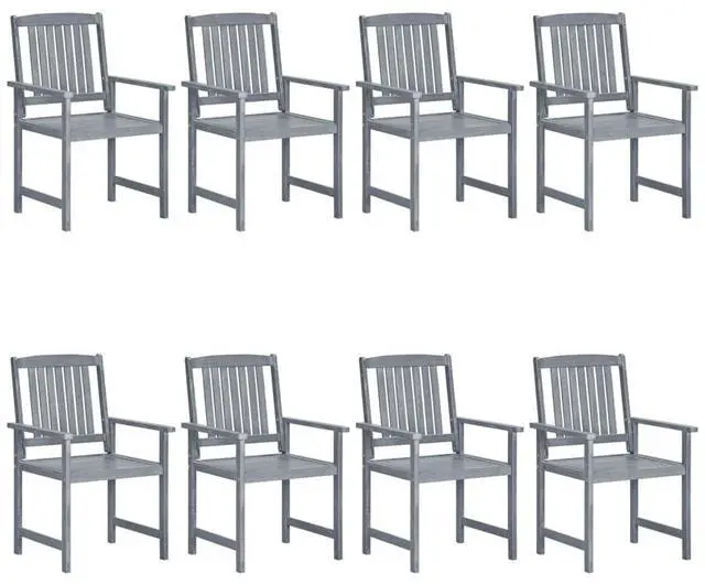 This 8-Piece Patio Chair Set is a great mix of style and practicality, made just for outdoor use. With rustic charm, each solid acacia wood chair shows off a weathered gray wash finish, making it not just comfy but also a beautiful addition to your outdoor space, perfect for relaxing meals or sunny days spent chilling with family and friends.