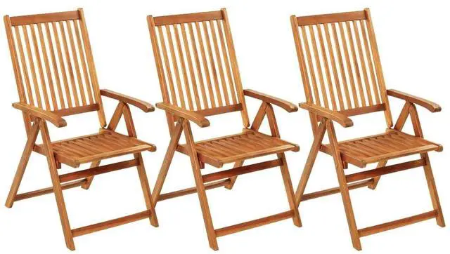This folding garden chair set merges vintage flair with modern practicality, just right for outdoor dining or chilling out. Made from solid acacia wood, each chair flaunts timeless beauty while offering robust support for every gathering.