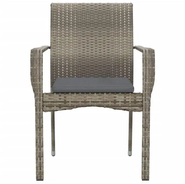 This set of grey poly rattan garden chairs is a top-notch addition to any outdoor area, blending modern style with practicality. These chairs have a sleek finish and a clean, simple shape, perfect for sprucing up your balcony, patio, or garden decor and creating a cozy spot to relax or hang out with friends.
