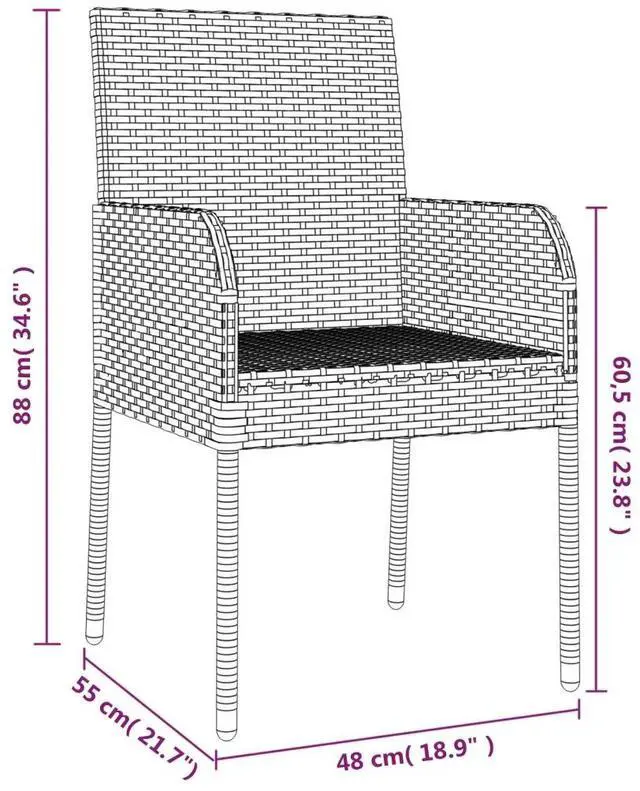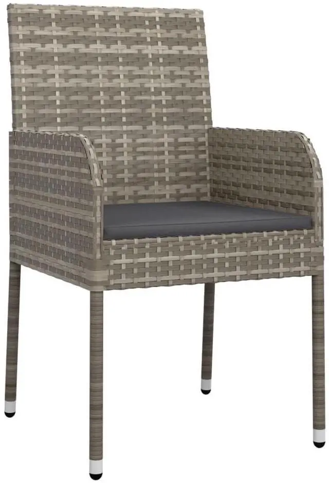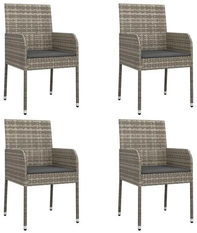 This set of four garden chairs with cushions is comfy and stylish, making it a smart choice for outdoor dining and relaxing. With a lovely grey poly rattan design, these chairs will upgrade your patio, garden, or balcony, fitting in with any decor while providing a comfy seating spot for you and your friends.