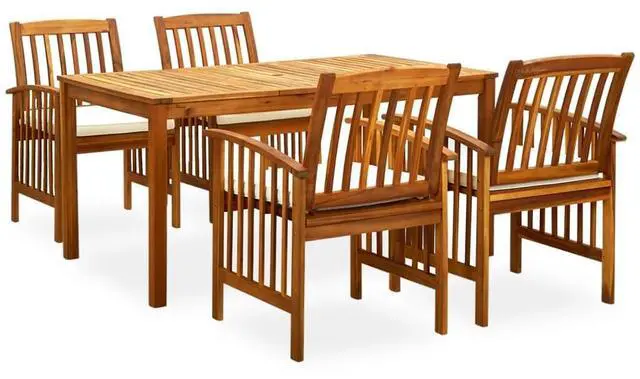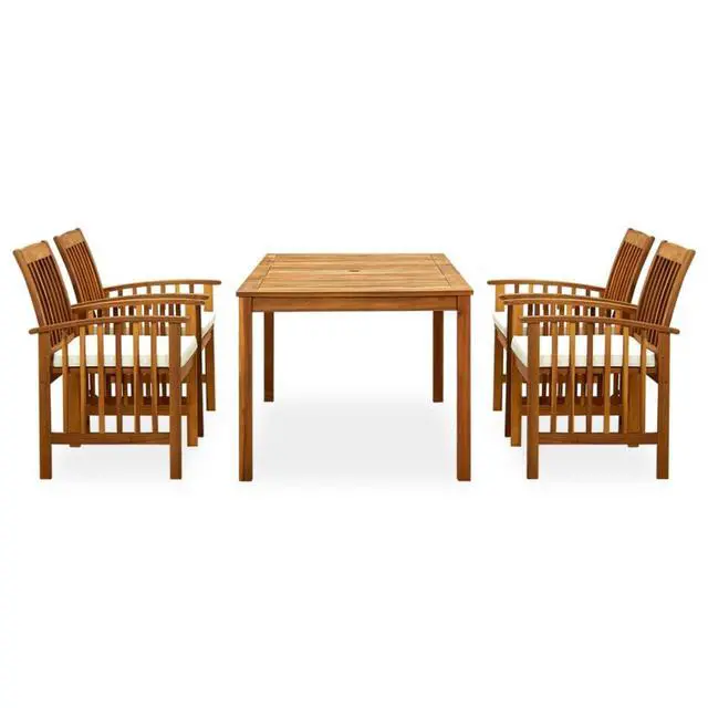 This snazzy Garden Dining Set is perfect for outdoor fun and eats. It has a rectangular table and four comfy chairs, all made of solid acacia wood that adds classy natural vibes, making it spot on for your garden or patio.