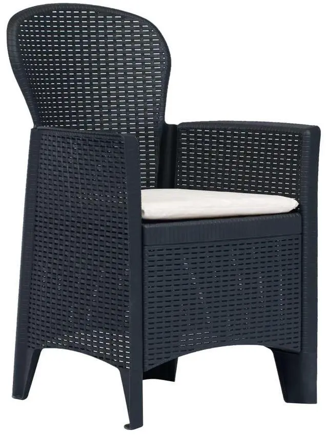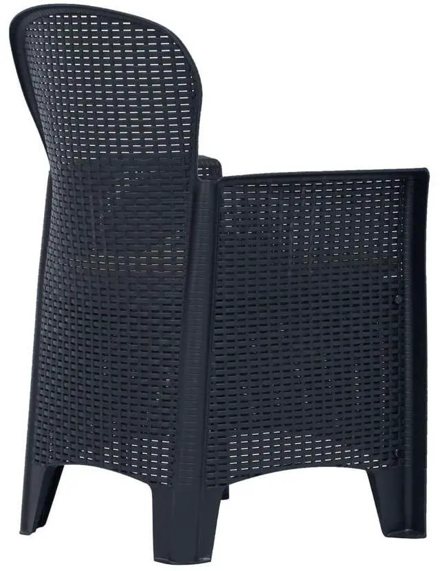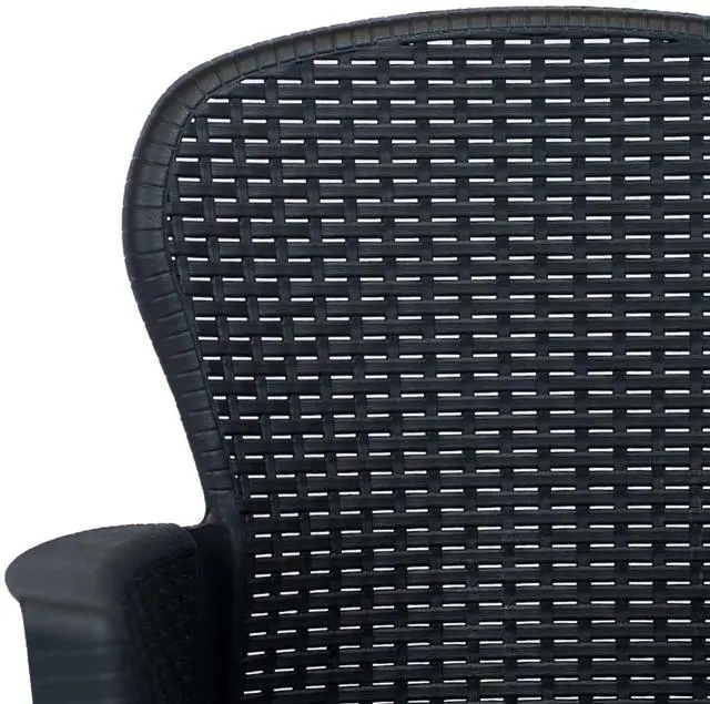 The patio dining set is made of solid plastic, which makes it durable and strong, as well as weather proof and easy to clean. Meanwhile, the rattan look design of these chairs adds a touch of natural charm to your patio living space. The patio furniture set is also lightweight and easy to move around. The patio table and chairs are easy to assemble.