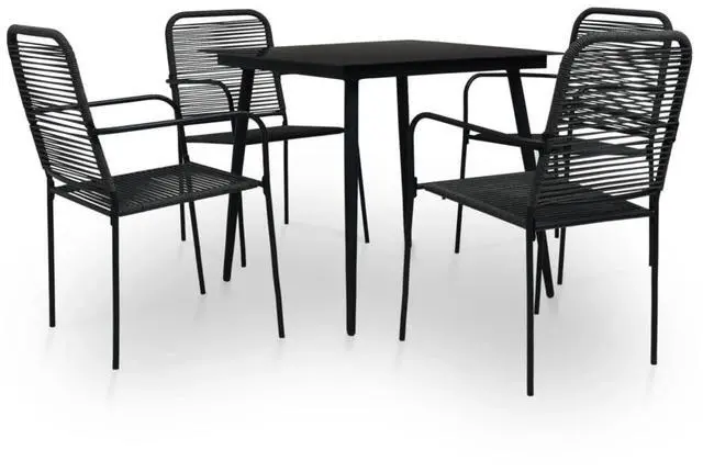This Modern 5-Piece Outdoor Dining Set is beautifully crafted to improve any dining area whether indoors or out, featuring a striking design that blends well with various styles. The set combines comfort with practicality, showcasing a sleek black tempered glass tabletop and supportive chairs upholstered in soft cotton for ultimate relaxation during meals or gatherings.