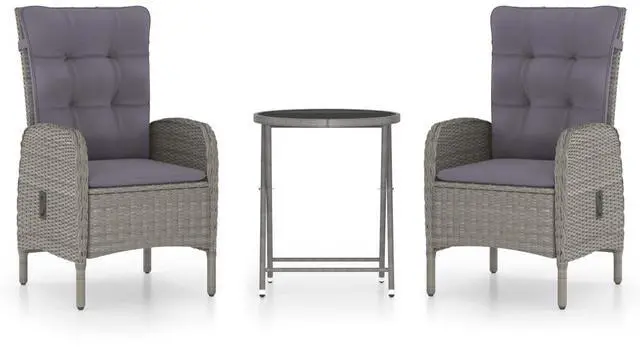 This grey bistro set is a fab mix of style and function, making it perfect for outdoor chill time. With its modern design, it fits right into any outdoor spot, like gardens or balconies, ensuring youre comfy when sharing a meal or drinks with others.