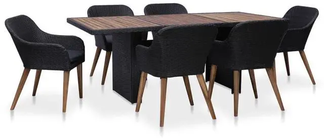 This outdoor dining set upgrades alfresco dining and turns any garden or patio into a luxurious dining space. Blending modern looks with practicality, the set includes a large table and six comfy chairs, all outfitted with stylish cushions made from tough materials suited for outdoor conditions.