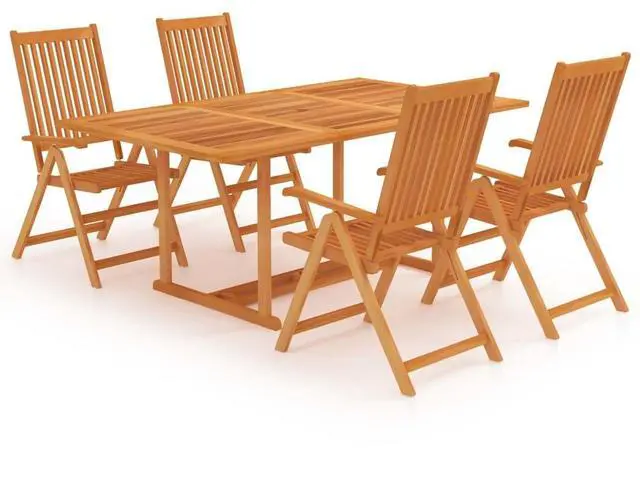 This Solid Teak Wood Garden Dining Set is all about elegance and durability, giving you the best dining experience for outdoor hangouts. Made with great attention to detail, it includes a rectangular table and four matching chairs, all with sleek lines and a warm brown finish that perfectly suits any garden or patio vibe.