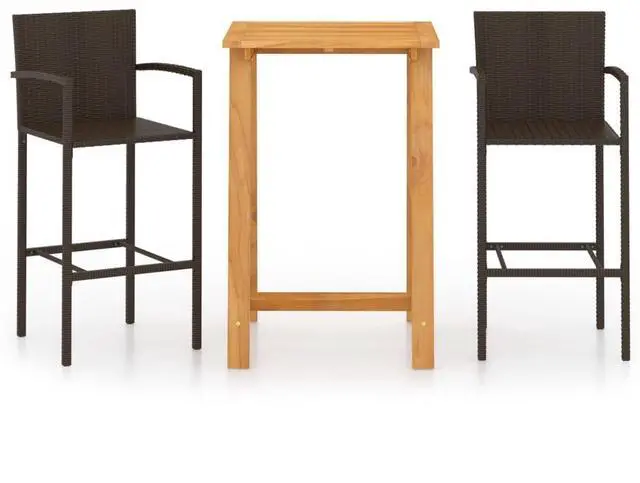 This 3-piece garden bar set is a brilliant addition to your outdoor hangout, giving you a classy and practical option for dining and chilling. It includes a beautifully crafted solid acacia wood table and two matching bar stools made of top-quality poly rattan, effortlessly combining comfort and durability for a relaxed vibe during gatherings.