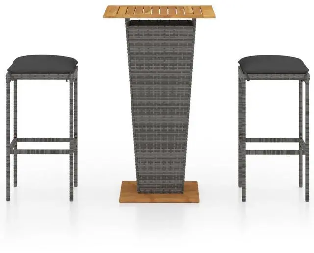 This stylish 3-Piece Garden Bar Set with Cushions combines comfort and style, turning any outdoor area like your balcony or garden into a trendy dining spot. It's made from sturdy materials and has a modern look that fits in well with your outdoor decor, perfect for enjoying meals or a coffee outside.