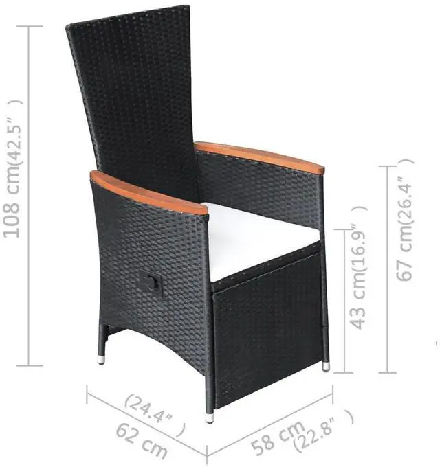 Material: PE rattan, steel, solid acacia wood, fabric (100% polyester)