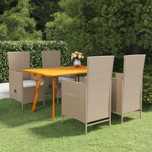 This 5-Piece Outdoor Dining Set fuses style with practicality, making it a great fit for your garden, patio, or terrace. The large rectangular table made of solid acacia wood gives a lovely rustic feel while comfortably seating up to five people, great for family get-togethers or entertaining friends outdoors.