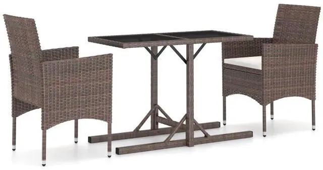 This 3 Piece Garden Dining Set is a classy choice for outdoor dining. Its got a sleek mix of poly rattan and powder-coated steel that jazzes up any balcony, patio, or garden. The modern design, with its smooth lines and ergonomic shape, blends function with good looks, making it perfect for relaxed get-togethers or chic outdoor dining.