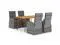 This patio table is made of solid acacia wood, making it sturdy and stable. The oil-finished surface also makes the table easy to clean with a damp cloth. Additionally, the curved legs contribute to its stylish design. Featuring a steel frame covered with weather-proof PE rattan, these dining chairs are sturdy and easy to clean. The thickly padded cushions add comfort in your lounging time.