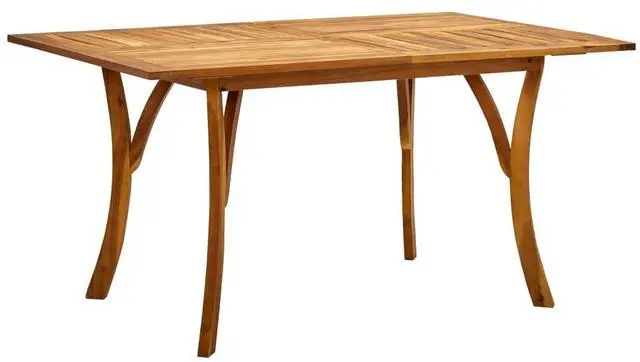 This patio table is made of solid acacia wood, making it sturdy and stable. The oil-finished surface also makes the table easy to clean with a damp cloth. Additionally, the curved legs contribute to its stylish design. Featuring a steel frame covered with weather-proof PE rattan, these dining chairs are sturdy and easy to clean. The thickly padded cushions add comfort in your lounging time.