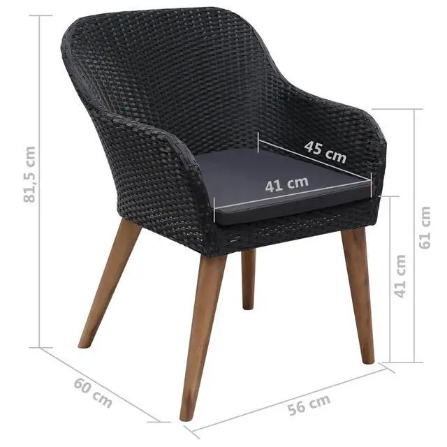 Material: Poly rattan, powder-coated steel, solid acacia wood with an oil finish