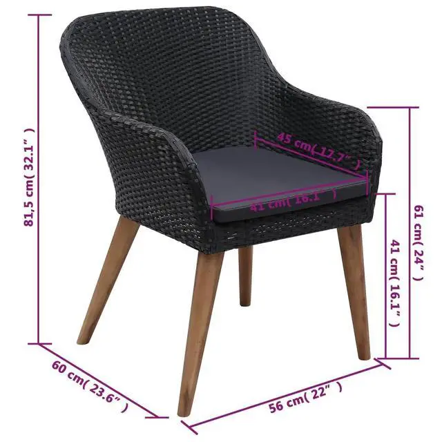 This 5-piece garden dining set is a fab mix of style and use, made to make your outdoor dining way better. With black poly rattan and solid acacia wood bits, it looks great and is tough, perfect for both family meals or classy get-togethers.