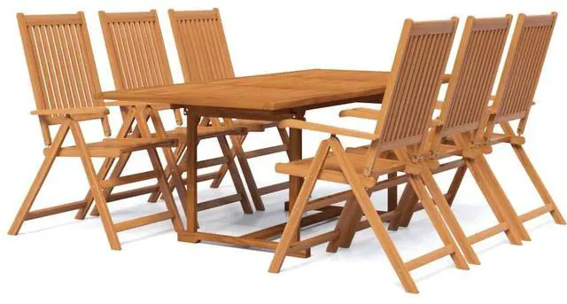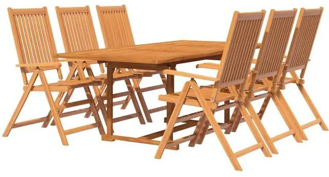 This 7-Piece Rectangular Acacia Garden Dining Set hits the sweet spot of comfort and style, ideal for outdoor dining. The solid acacia wood build brings a lovely earthy look to your patio or garden, making it a great spot for family get-togethers and outdoor meals. The beautiful oiled finish shows off the natural texture and grain of the wood, giving it a classic and classy look that suits any outdoor decor theme.