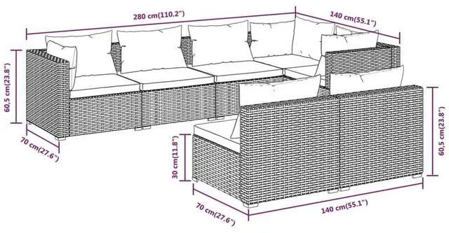 This 7 Piece Garden Lounge Set merges style with function, making it perfect for outdoor chilling and leisure. Built with sturdy poly rattan, its got a modern look that brightens up any garden, patio, or balcony while letting you create a comfy spot for family and friends.