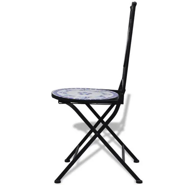 This 3 Piece Bistro Set brings together style and function with its smart design and tough build, making it perfect for your dining area, whether indoors or out. The round table and two chairs feature a lovely geometric ceramic tile surface that adds to the look, giving guests and family a comfy space for meals or drinks.