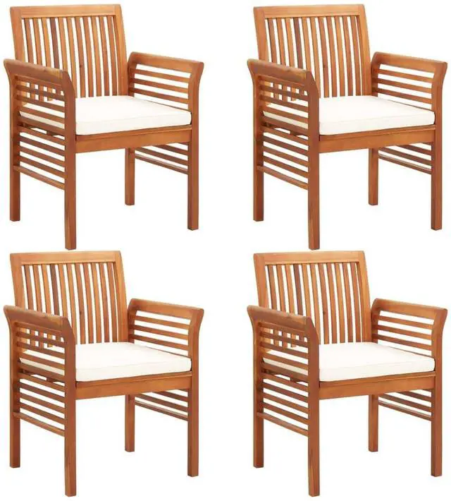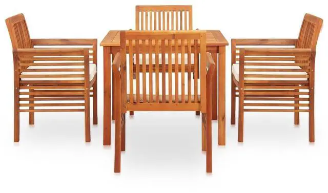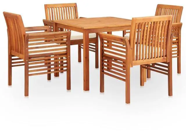 This 5-Piece Outdoor Dining Set blends comfort and style, making it perfect for outdoor gatherings and alfresco dining. It comes with a solid dining table and four stylish chairs, all made from durable acacia wood that brings a lovely natural vibe, making your patio or garden feel warm and inviting.