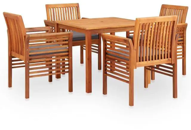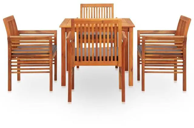 This sleek 5-Piece Acacia Wood Outdoor Dining Set brings style and practicality together, adding a touch of nature to your outdoor space. Its solid wood build and smooth finish enhance any patio, balcony, or garden while setting the scene for family meals or summer hangs.