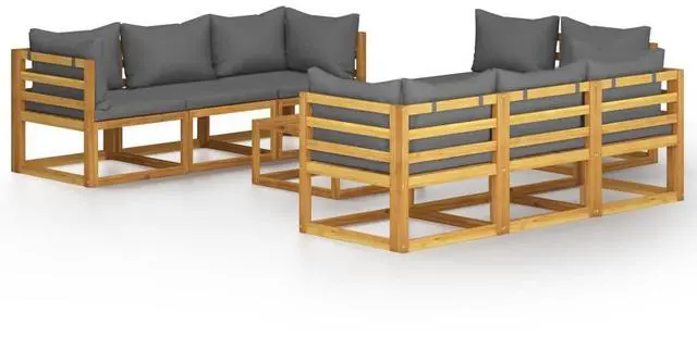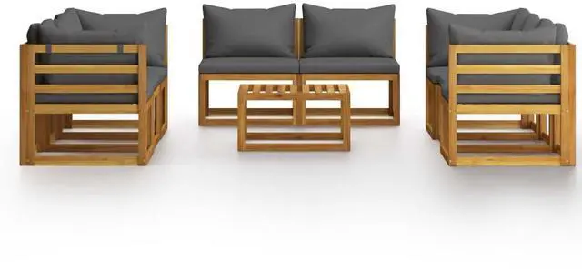 This Modular Garden Lounge Set combines style and functionality to elevate your outdoor space with elegance and comfort. It's perfect for gatherings, featuring a modern square design made of solid acacia wood with an oiled finish, so it's not only nice to look at but tough enough to face all weather, making it a great choice for your patio or garden.