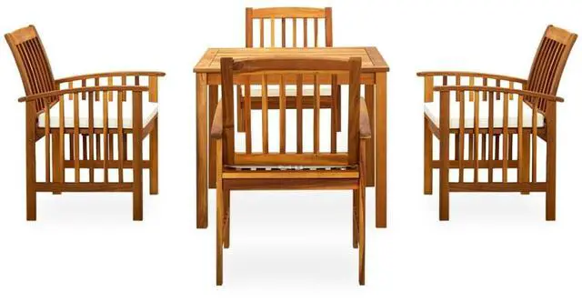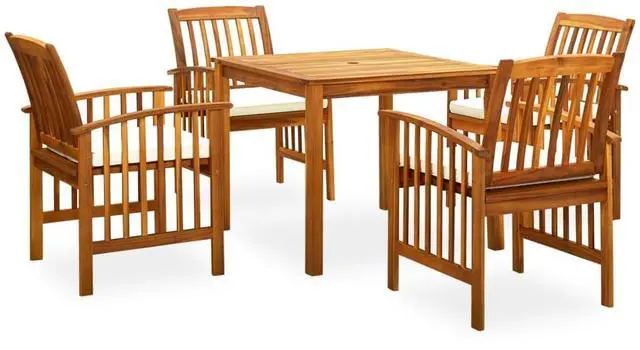 This 5 Piece Garden Dining Set is a gorgeous addition to any outdoor space, blending classic style with modern comfort. Made from solid Acacia wood, its lovely design is enhanced by soft cushions that make it a great spot for gatherings, outdoor meals, or just chilling on a sunny day.