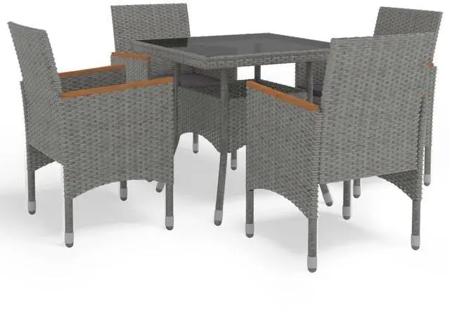 Weather-Resistant Materials: Made with tough poly rattan and solid acacia wood, this dining set is built to brave the weather, making it an ace addition to your outdoor furniture collection.