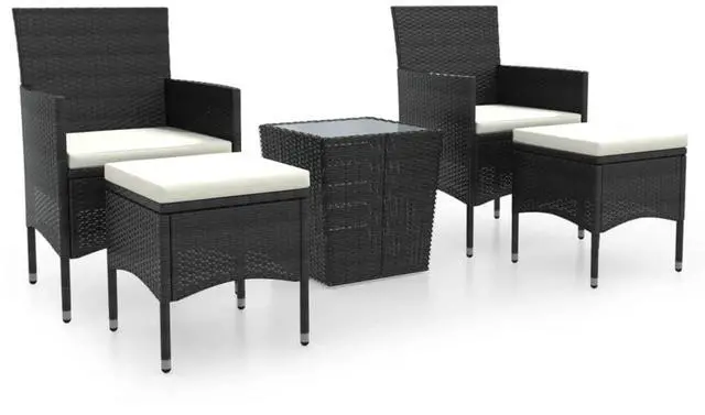 This 5-Piece Garden Bistro Set is all about modern outdoor comfort, mixing stylish design with practicality. Perfect for small balconies or patios, showcasing a sleek tempered glass table and fancy rattan chairs. It's all set up for alfresco dining or laid-back reading.