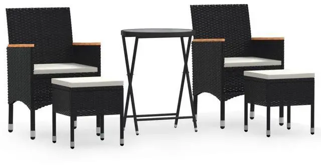 This 5-Piece Garden Bistro Set is just what you need for outdoor chilling. Its modern design and nice colors will brighten up your patio or balcony. You'll get a round table and soft cushions, making it perfect for meals, reading, or just enjoying a coffee with family or friends. Made from quality materials, this set looks great and keeps you comfy for all sorts of occasions throughout the year.