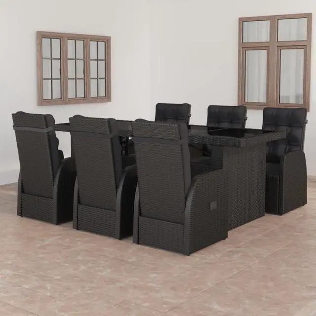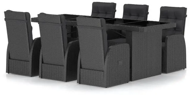 This 7-piece outdoor dining set blends style and function, making it perfect for gatherings and relaxing. It's well-crafted to enhance your outdoor areas like patios or balconies, featuring a sleek black design that fits various garden styles and offers a great spot for enjoying meals outside.