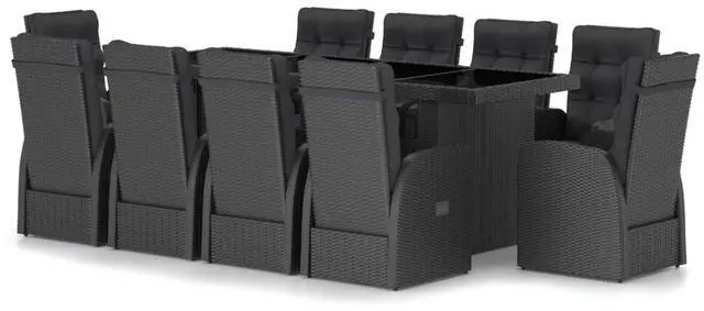 This fantastic 11-piece outdoor dining set is your perfect pick for gatherings, made with top-notch PE rattan and sturdy powder-coated steel. Great for terraces, balconies, or garden patios, it comes with plush cushions and an adjustable multi-position backrest, so you can kick back and enjoy meals outside with your loved ones, whether it's a casual lunch or a fancy dinner party.