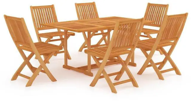 This 7-Piece Dining Set is all about outdoor style and offers a practical dining experience. Made from solid teak wood, it has a warm finish that adds a lovely touch to gardens, patios, or dining rooms, making it a great spot for gatherings or relaxed meals.