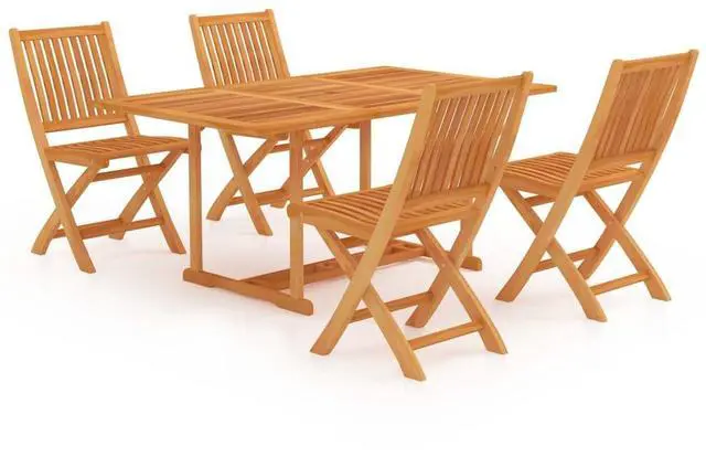 This 5-Piece Rectangular Garden Dining Set gives you the perfect mix of style and practicality, ideal for any meal occasion, whether indoors or outdoors. Made from solid teak wood, it has a warm brown finish that easily brightens up any space, from lively garden gatherings to cozy indoor dining.