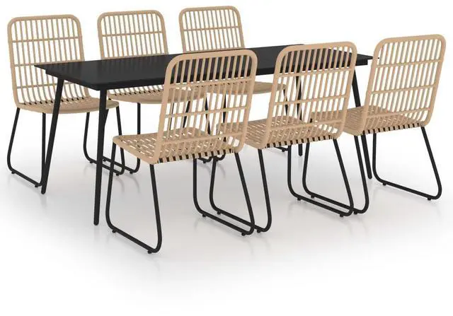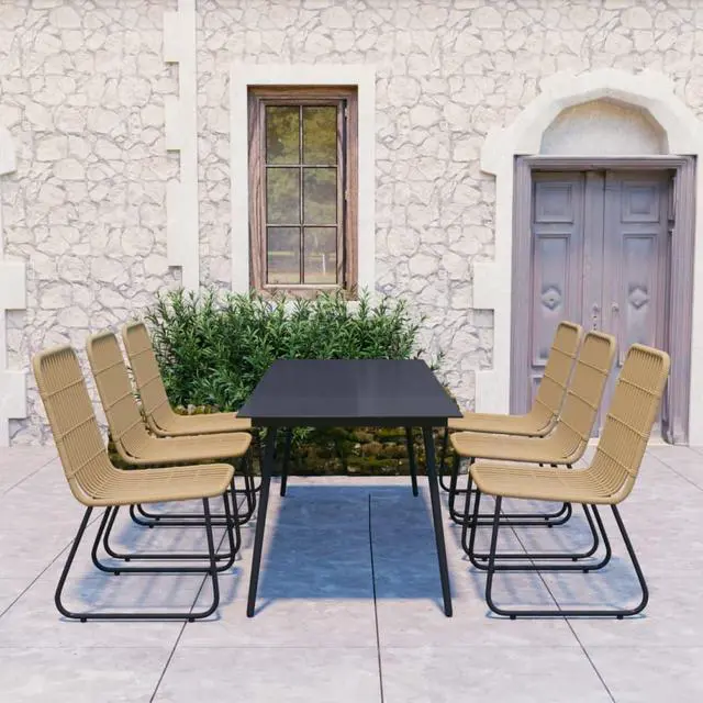 This lovely 7 Piece Outdoor Dining Set is all about blending modern design with function. It's perfect for both indoor and outdoor dining. With its classy poly rattan and tempered glass, it's not just a good-looking dining solution; it also lifts any dining experience with its chic, minimalist vibeideal for gatherings or quiet meals on your balcony, patio, or garden.