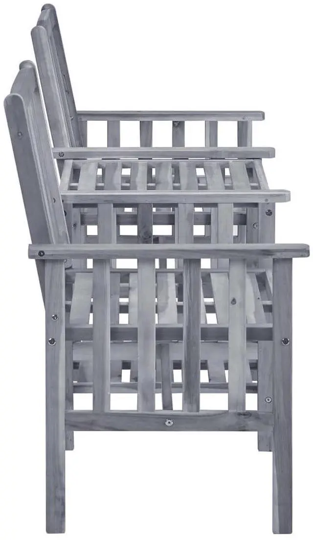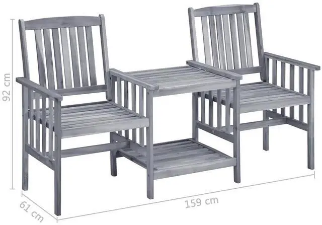 This patio chairs set includes a beautifully designed tea table and two seating options, perfect for enjoying sunny days outdoors. Made entirely from solid acacia wood, it shows rustic charm while being a sturdy and comfy spot for tea with family or friends.