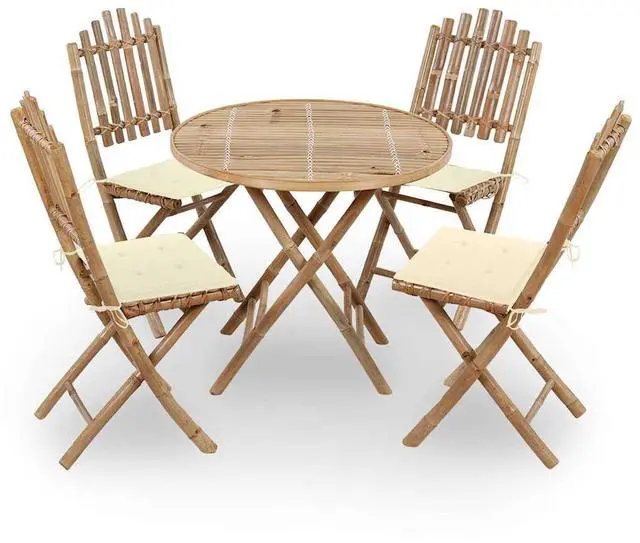 This 5-Piece Foldable Outdoor Dining Set is the perfect mix of style and function, making your outdoor area more inviting. Made from solid bamboo fiber, it brings a touch of rustic charm to your balcony, patio, or garden.