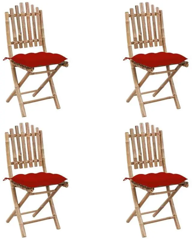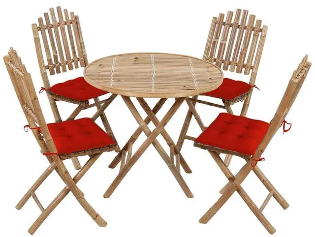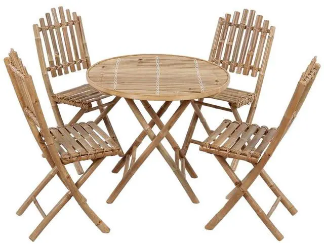 This 5-Piece Folding Patio Dining Set is a fab addition to any outdoor space, mixing practicality with rustic charm. It's great for get-togethers on your patio, balcony, or garden, featuring a natural bamboo finish that goes well with various outdoor styles, creating a cozy atmosphere for dining and relaxation.