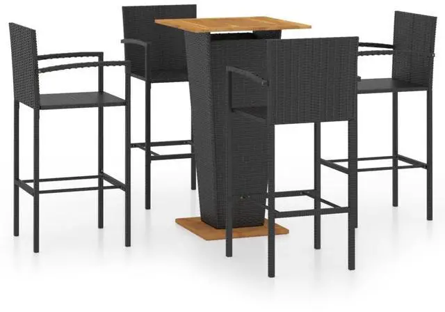 This 5 Piece Garden Bar Set brightens any outdoor space, making it perfect for summer get-togethers. With its sleek design featuring smooth lines and a stylish black finish, this set features a square table and four comfy chairs, ideal for laid-back evenings with friends or family gatherings on the balcony, garden, or terrace.