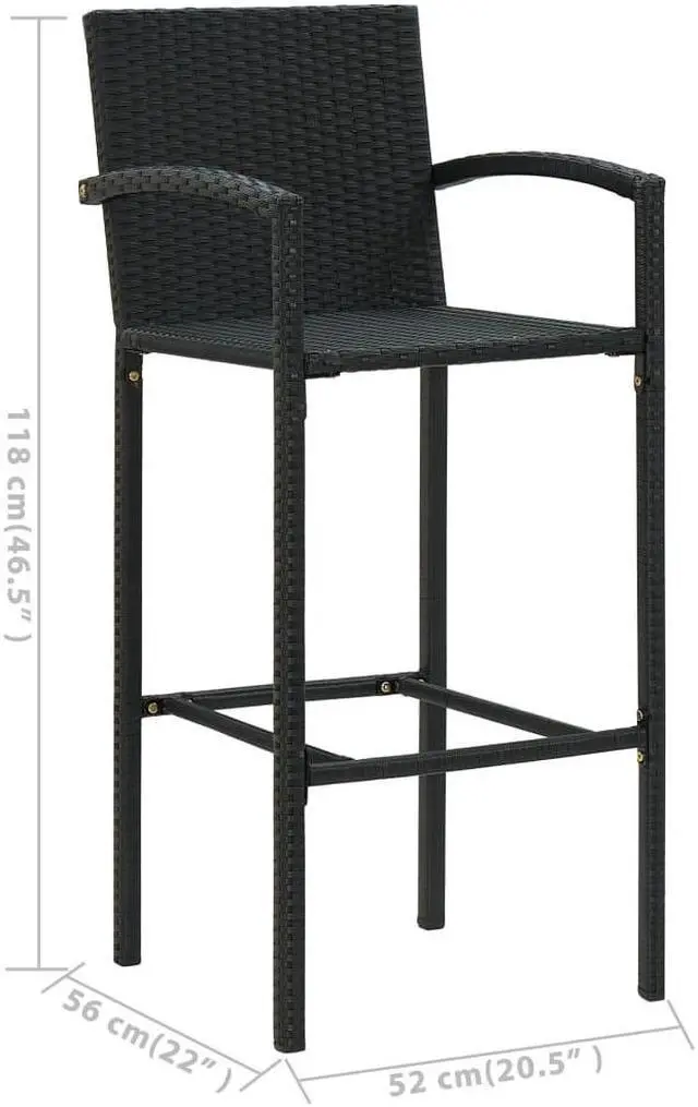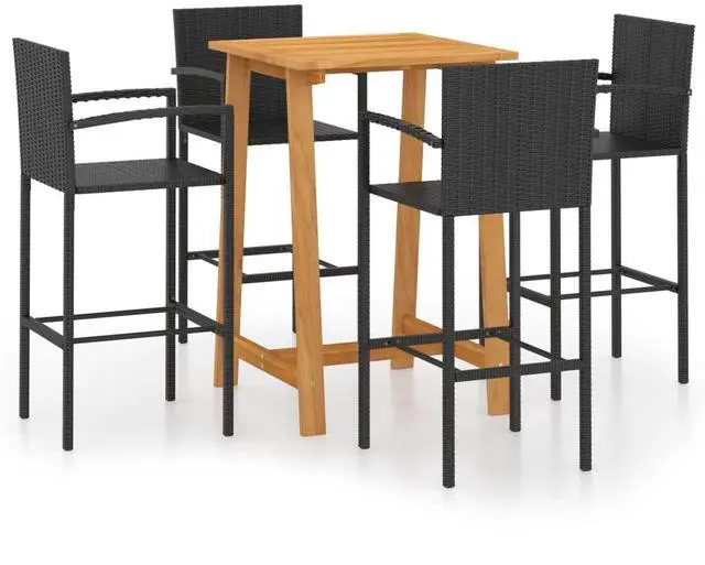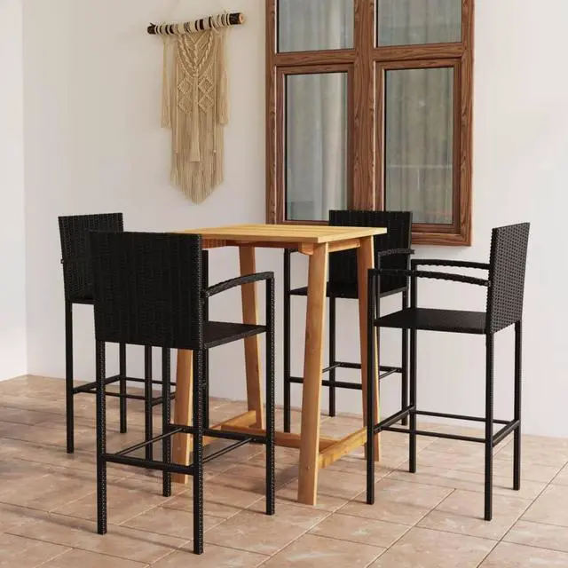 The table is made of solid acacia wood with an oil finish, which makes it stable, durable and easy to maintain. Featuring a powder-coated steel frame covered with weather-proof PE rattan, the bar stool is sturdy and easy to clean.