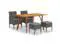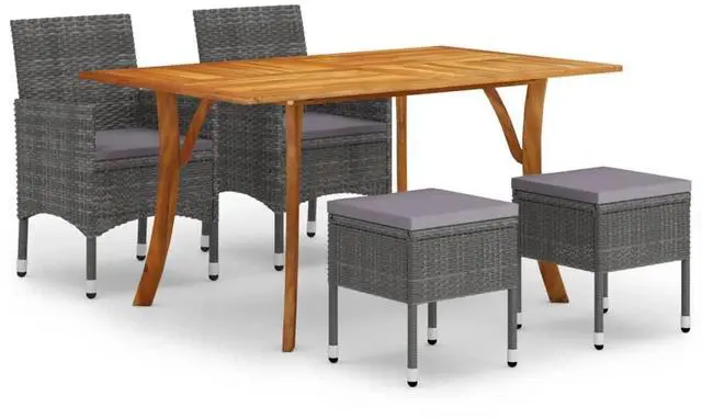 This 5-Piece Outdoor Dining Set showcases a gorgeous grey color scheme that fits in nicely with different outdoor settings. Perfect for garden parties or patio dinners, its made from solid acacia wood and poly rattan, promising both style and durability with its smooth feel and chic design.