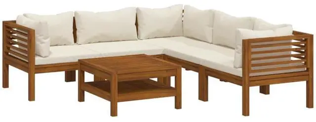 This Modular Garden Lounge Set is a top pick for outdoor chilling, perfect for enjoying warm summer evenings or hanging out with friends in your garden or patio. Its sleek and comfy, mainly built from solid acacia wood, with cream cushions that bring a nice touch to your outside space.