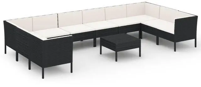 This 11-piece garden lounge set is just what you need for your outdoor area. It's comfy and stylish, perfect for chilling out and chatting with friends. Made of weather-resistant PE rattan, this modular seating solution is great for balconies, sunrooms, or gardens, while offering plenty of seating for any occasion.