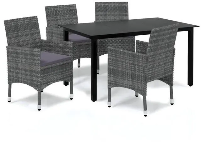 This 5-Piece Garden Dining Set with Cushions is a stylish addition to any outdoor balcony, patio, or garden. Its designed to blend practicality and aesthetics beautifully. With its modern design, this set has a sleek, smooth surface and comfy seating, making it ideal for dining, lounging, or just chilling out, whether for intimate meals or lively get-togethers.