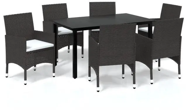 This 7 Piece Garden Dining Set with Cushions is a fancy and stylish way to dine outdoors, mixing modern design with great functionality. Made from weather-resistant PE rattan and tough steel, it includes six chairs and a big rectangular table, making it perfect for get-togethers on your balcony or patio. With its elegant matte finish and smooth feel, this furniture set makes your outdoor space look nice and comfy for outdoor dining.