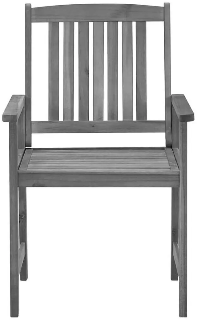 Decorate your outdoors with these slatted wooden patio chairs, adding a touch of rustic charm.