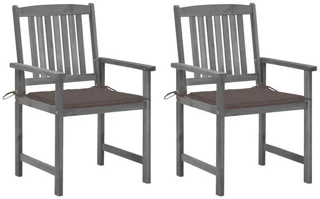 These garden chairs are made of solid acacia wood, making them sturdy and stable. The cushions add extra comfort. Each cushion features two sets of ropes to fix it on the outdoor chair tightly.