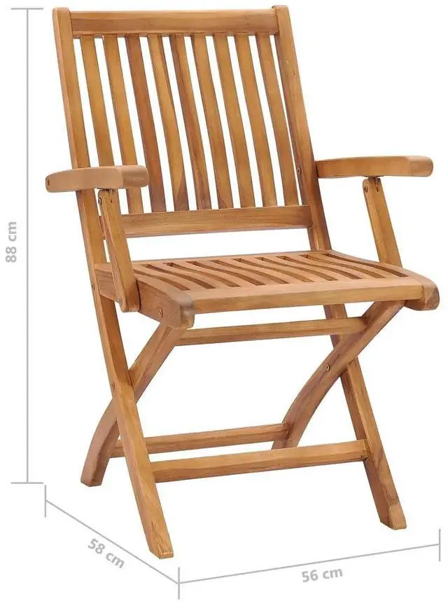 Constructed from extremely durable teak hard wood, this set of teak furniture has been seasoned, kiln dried and then fine sanded to give a very smooth appearance. Teak wood is known for its exceptional strength and weather resistance, making it far more suitable for patio furniture than any other kind of wood. Teak wood is the perfect choice if you want to purchase a long lasting piece of patio furniture. Thanks to the sanded surface, the dining chairs are weather-proof and easy to clean. They can also be folded to save storage space when not in use.